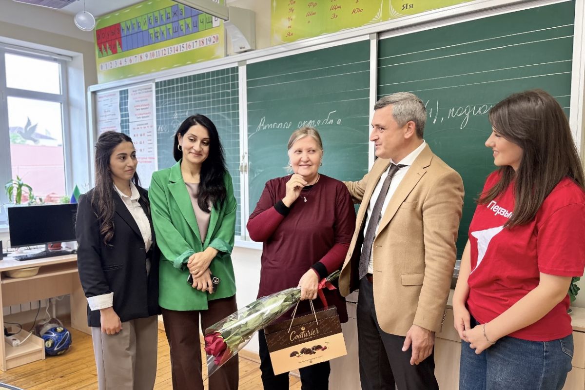 В Дербенте помощник депутата горсобрания Баба Кулиев вместе с активистами «Единой России» и «Движения Первых» поздравили с Днём учителя педагога гимназии №1, мать участников СВО Веру Туровец.