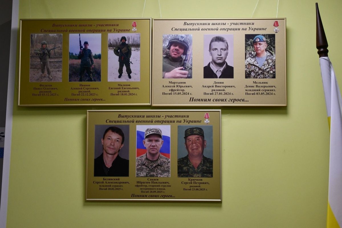 В школе №1 Сасовского округа Рязанской области установили мемориальные доски в честь выпускников, погибших в ходе СВО: Павла Филатова, Алексея Иванова, Евгения Малахова, Алексея Мартынова, Андрея Донина, Дениса Мельника, Сергея Белявского, Ибрагима Сакаева и Сергея Крючкова.