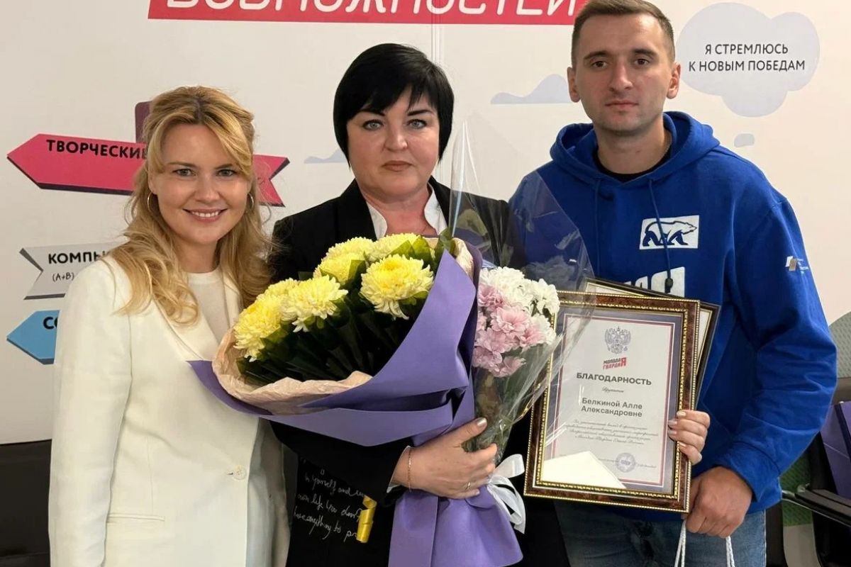 В Луганске молодогвардейцы совместно с сенатором Совфеда от Луганской Народной Республики Дарьей Лантратовой вручили педагогам благодарственные письма, цветы и подарки.