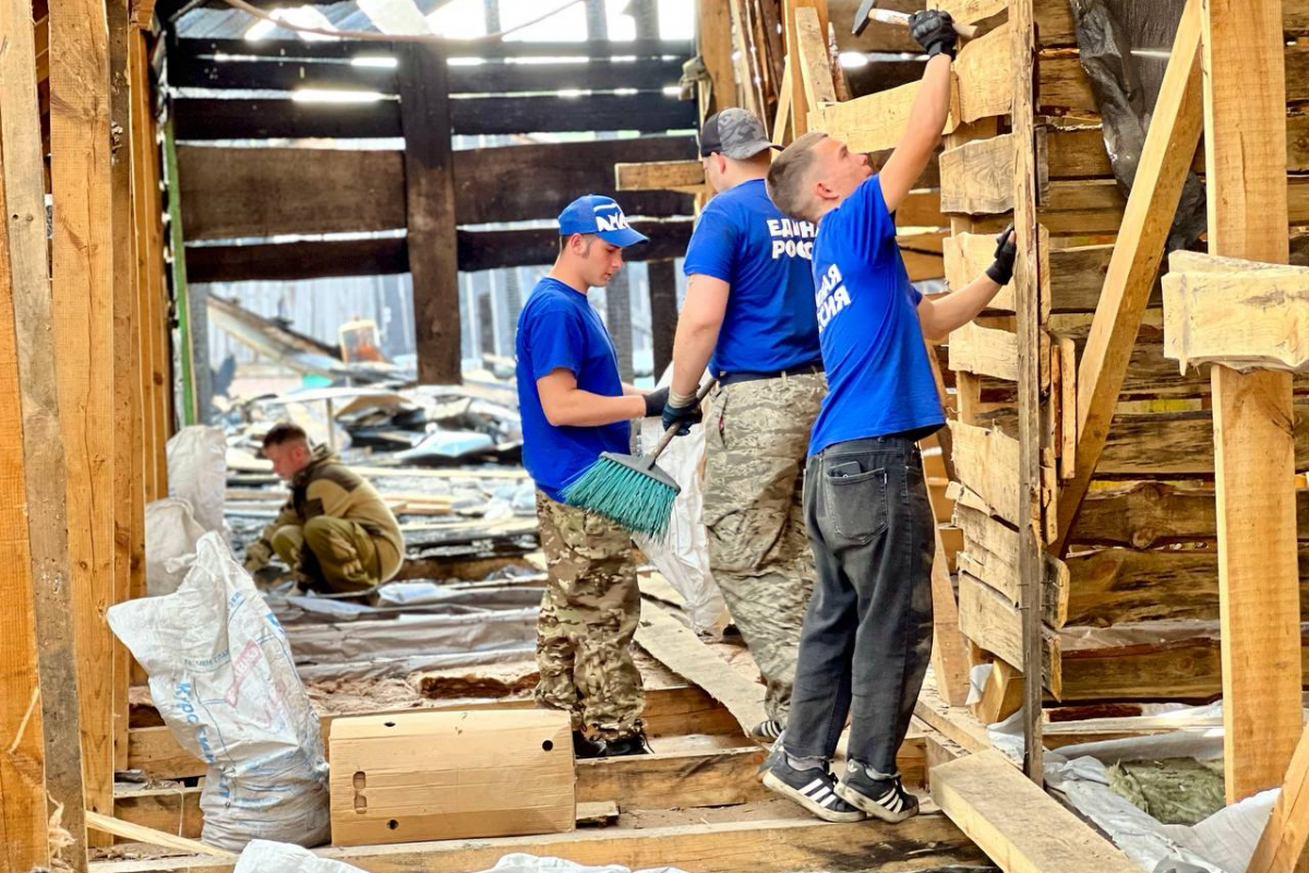 За последние две недели волонтёры партии восстановили шесть домов, благоустроили четыре двора, отремонтировали надворные постройки и вывезли 55 тонн строительного мусора.