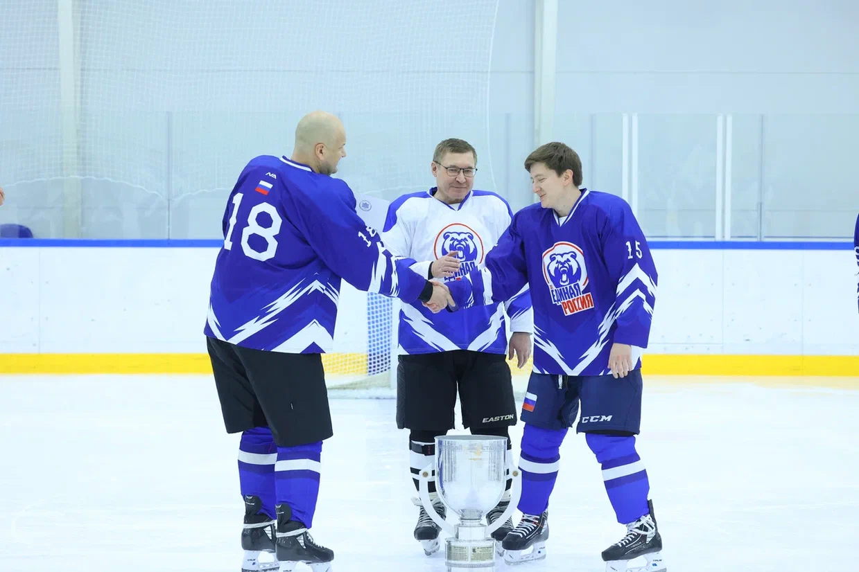 Владимир Якушев вручил партбилеты «Единой России» любительской хоккейной команде «Белые Медведи ЕР»